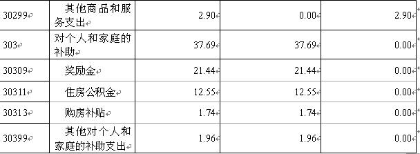 (三)对个人和家庭的补助37.68万元,占基本支出的22.53%。主要包括奖励金21.44万元、住房公积金12.54万元、购房补贴1.74万元、其他对个人和家庭的补助支出1.96万元。
