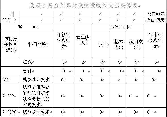 注:本表反映部门本年度的总收支和年末结转情况。有关填表说明: