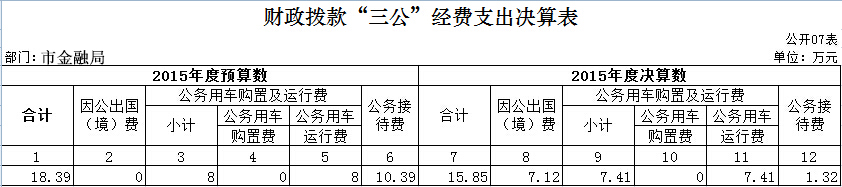 十二、“三公”经费:按照党中央、国务院有关文件及部门预算管理有关规定,“三公”经费包括因公出国(境)费、公务用车购置及运行费和公务接待费。(1)因公出国(境)费,指单位工作人员公务出国(境)的住宿费、旅费、伙食补助费、杂费、培训费等支出。(2)公务用车购置及运行费,指单位公务用车购置费及租用费、燃料费、维修费、过路过桥费、保险费、安全奖励费用等支出。公务用车指用于履行公务的机动车辆,包括领导干部专车、一般公务用车和执法执勤用车。(3)公务接待费,指单位按规定开支的各类公务接待(含外宾接待)支出。
