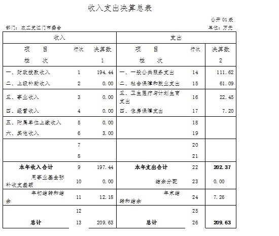 农工党江门市委会2015年度总收入197.44万元,其中本年收入197.44万元。具体情况如下: