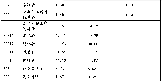 (三)对个人和家庭的补助79.67万元,占基本支出的51.93%。主要包括离休费