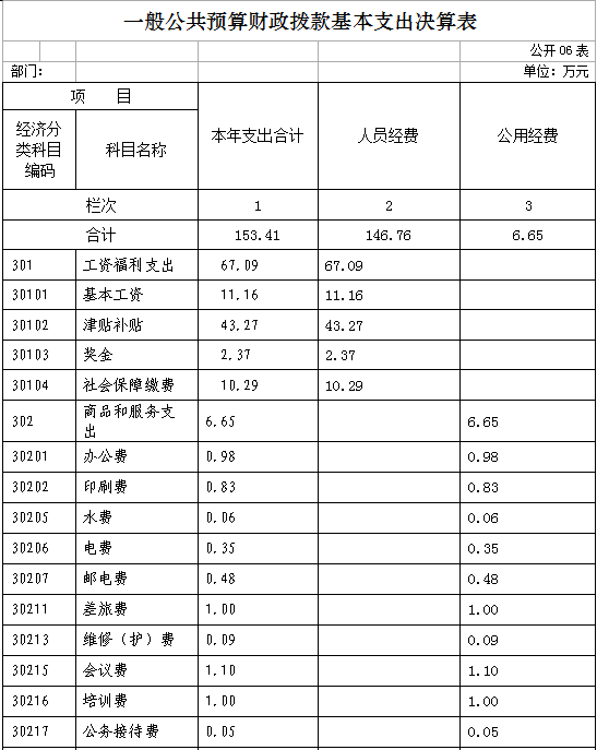 农工党江门市委会2015年度一般公共预算财政拨款基本支出153.41万元,其中: