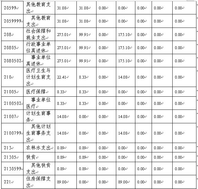 其中:教育支出(类)1794.21万元,社会保障和就业支出(类)175.10万元,医疗卫生与计划生育支出(类)14.08万元,住房保障支出(类)89万元。