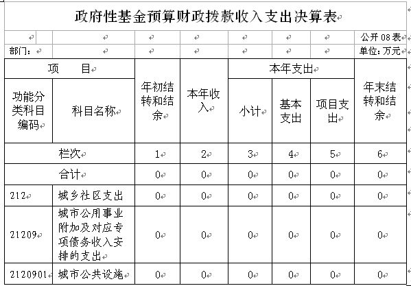 (2)本表功能科目填列到项级支出科目,没有发生数的支出科目不用填列。