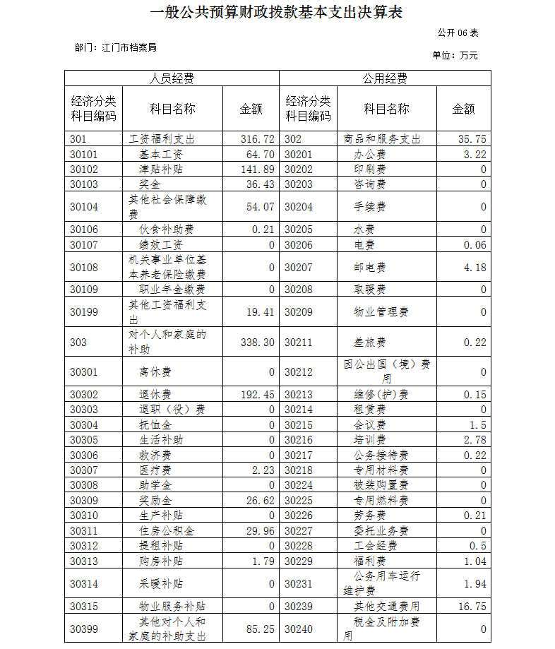 江门市2016年度一般公共预算财政拨款基本支出690.77万元,其中: