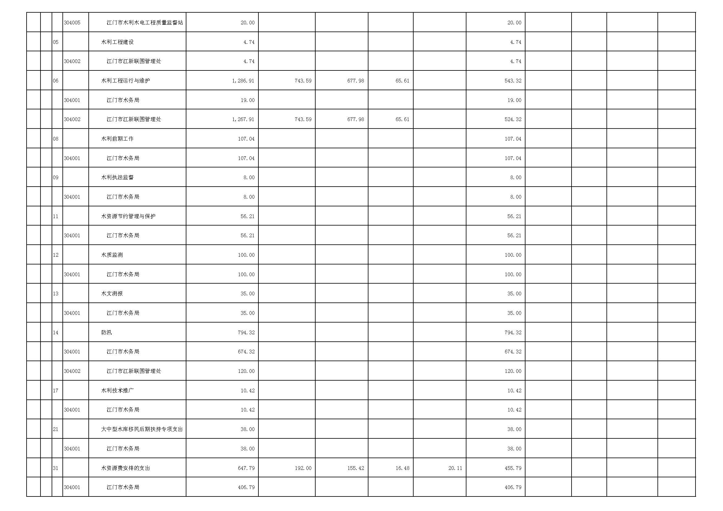 (一)本部门预算为汇总预算,包括:局机关本级预算,以及纳入编制范围的下属单位预算。下属单位具体包括:江门市江新联围管理处、江门市水政水资源管理所和江门市水利水电工程质量监督站。