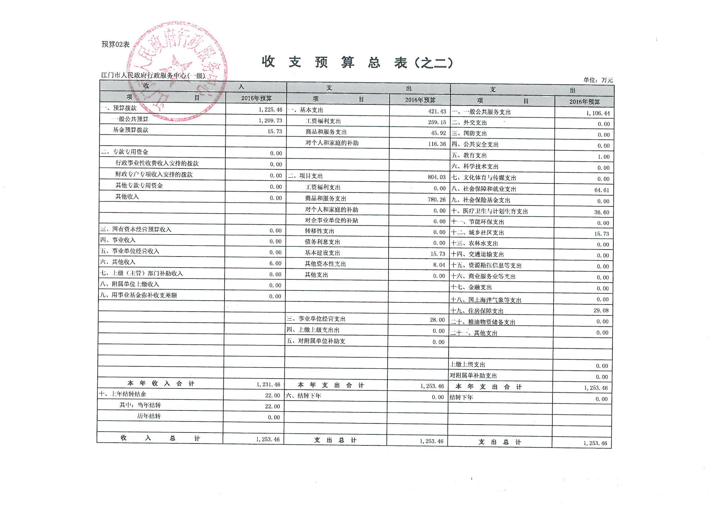 第二部分 2016年江门市人民政府行政服务中心部门预算表