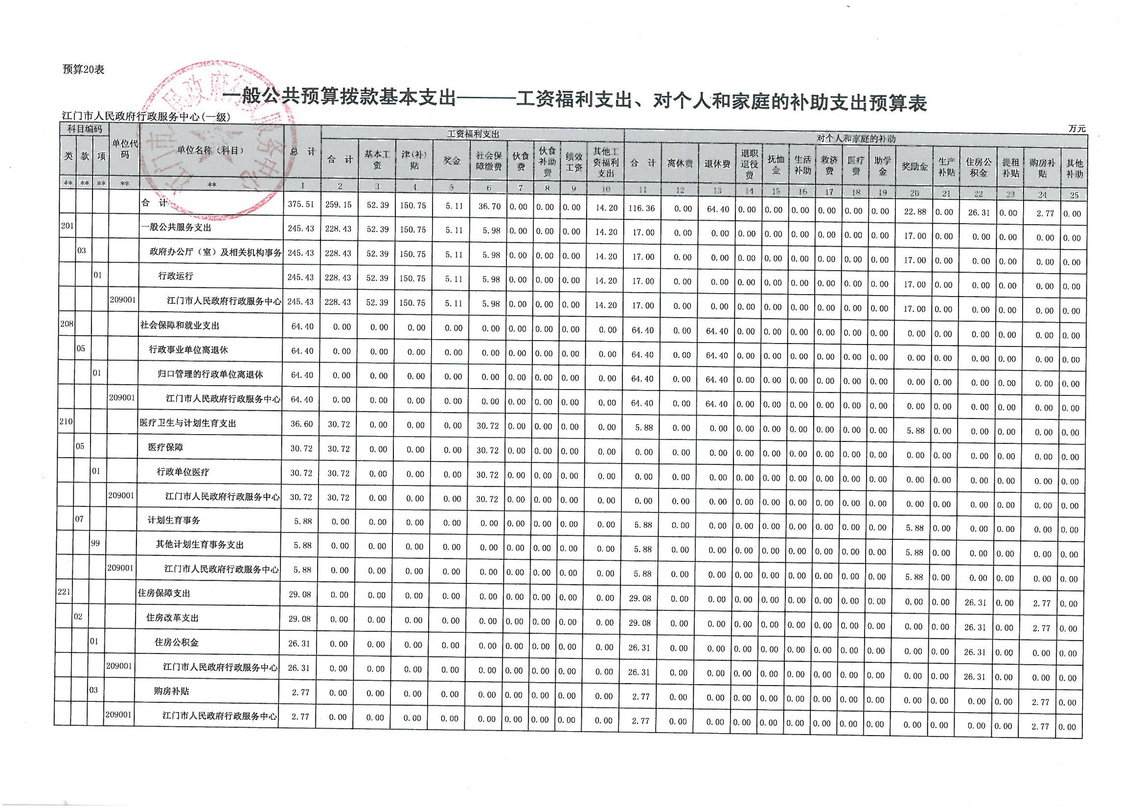 二十、 一般公共预算拨款基本支出——工资福利支出、对个人和家庭的补助支出预算表
