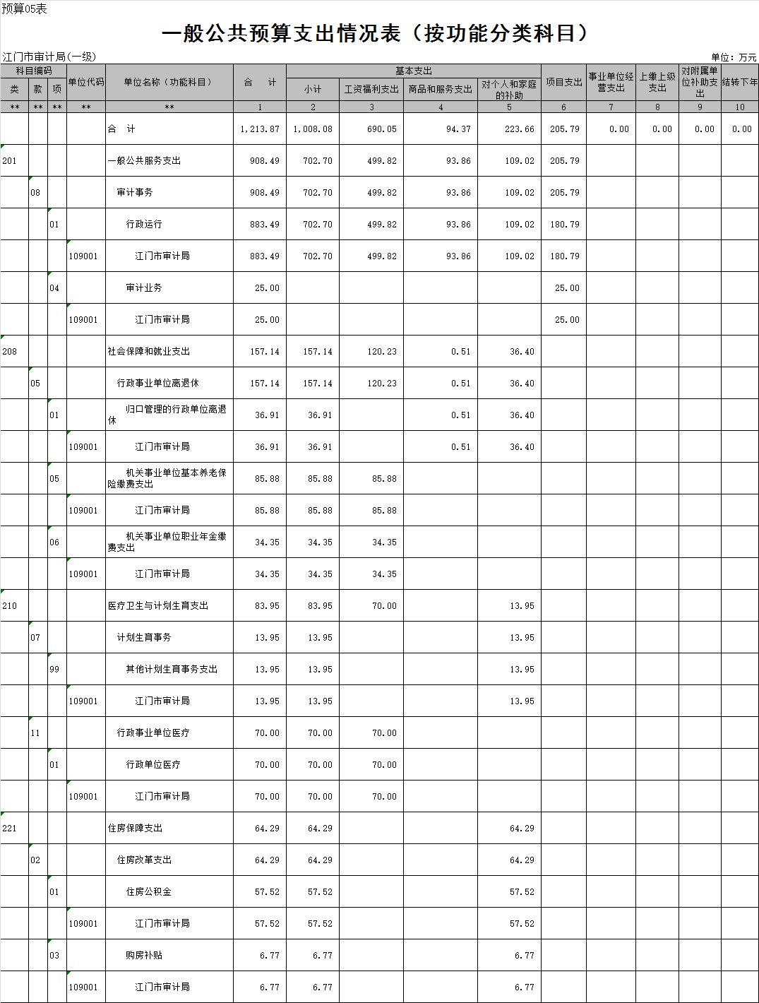 预算05表:一般公共预算支出情况表(按功能分类科目)