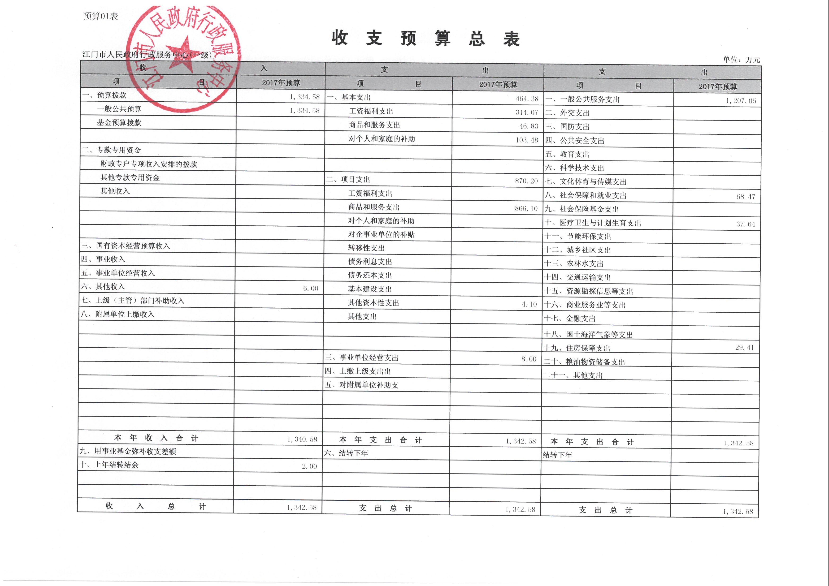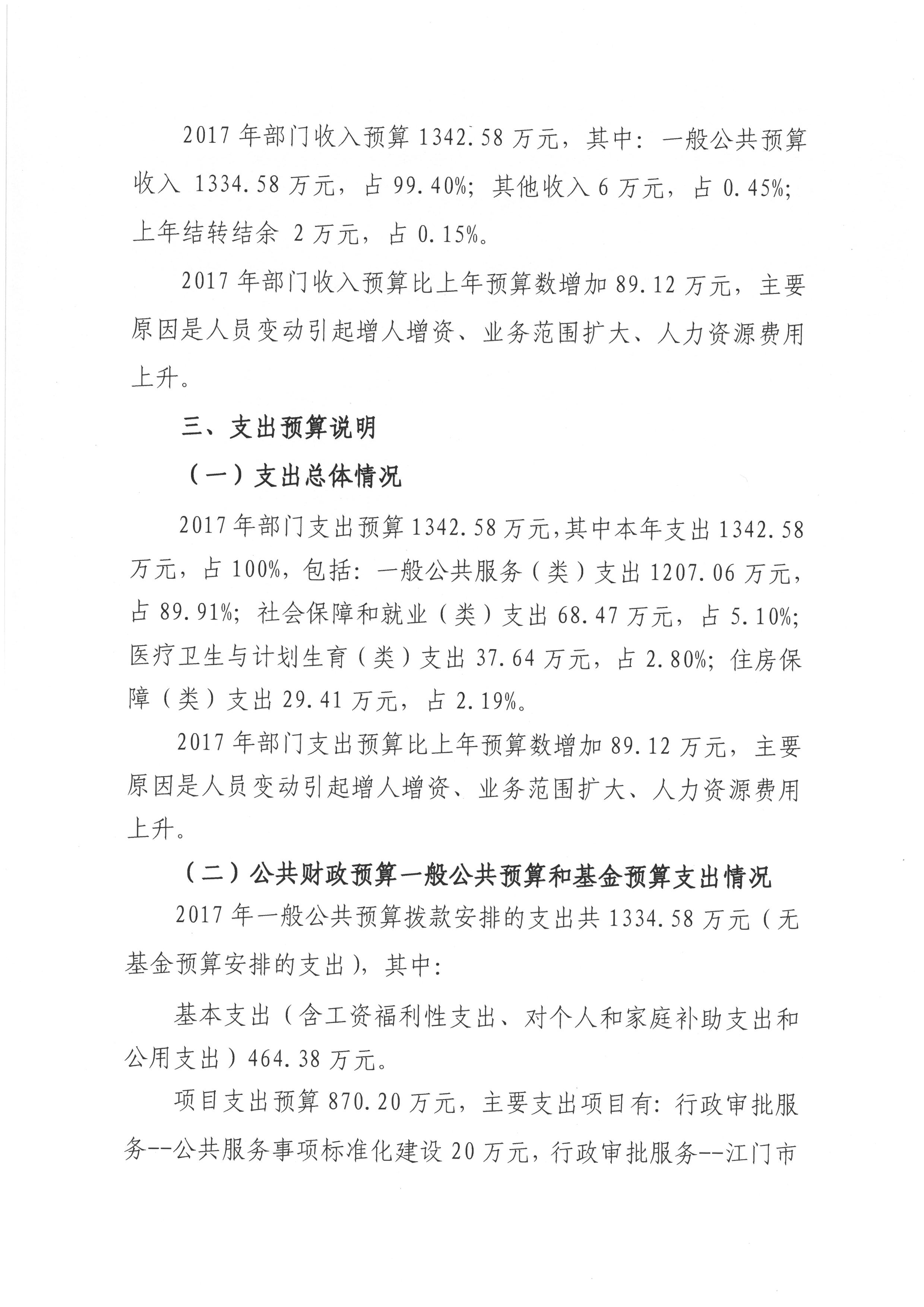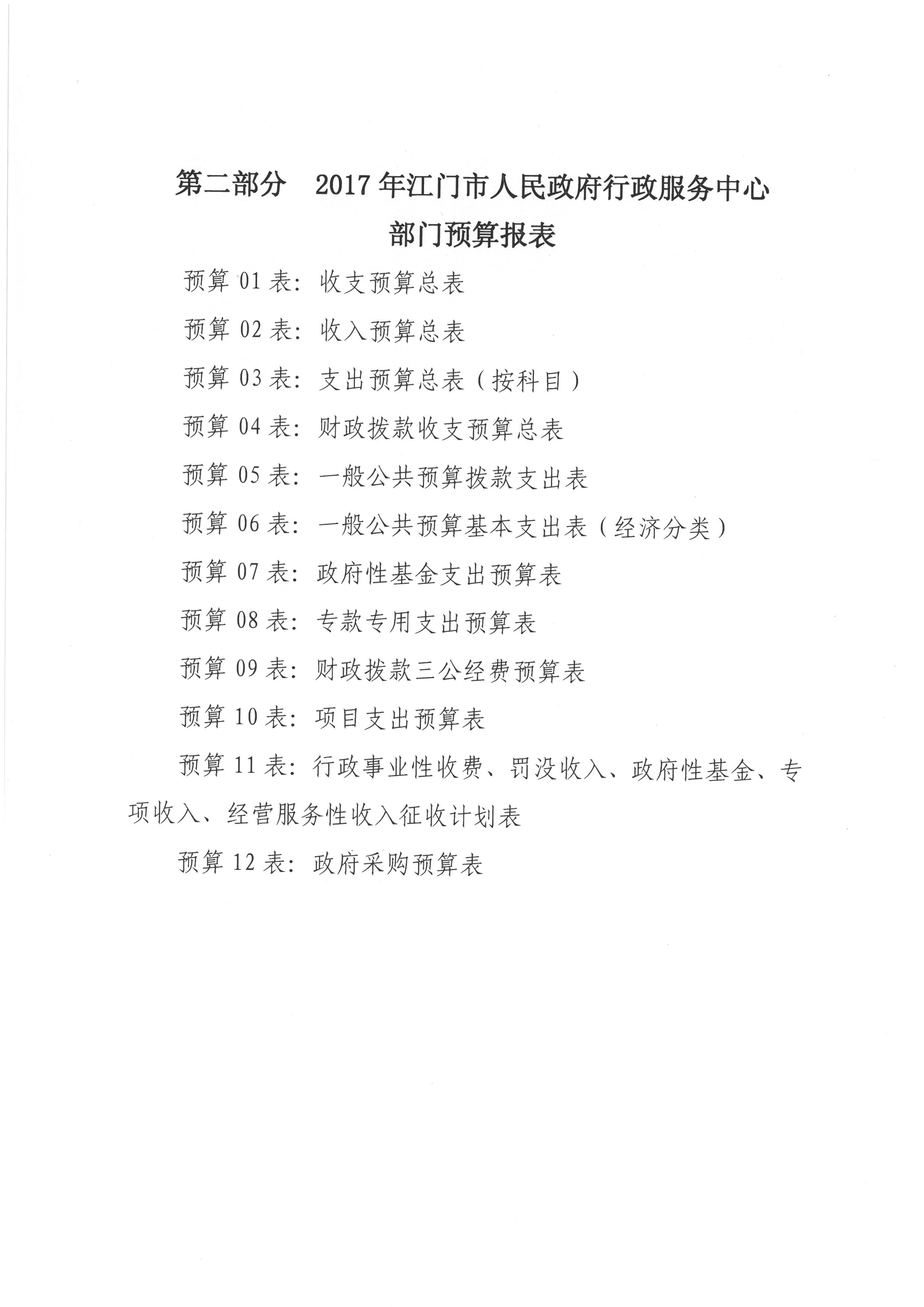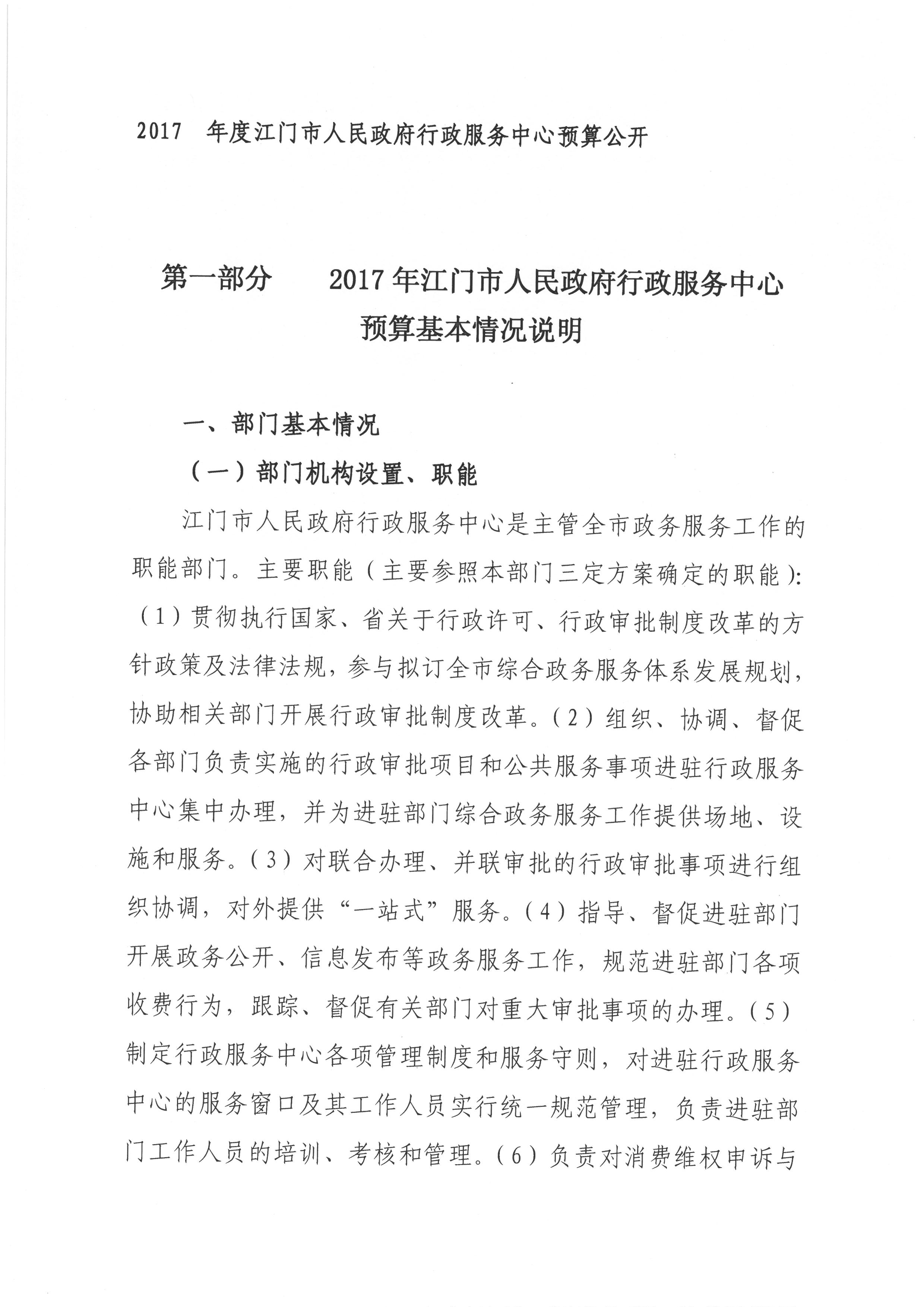 2017 年度江门市人民政府行政服务中心部门预算