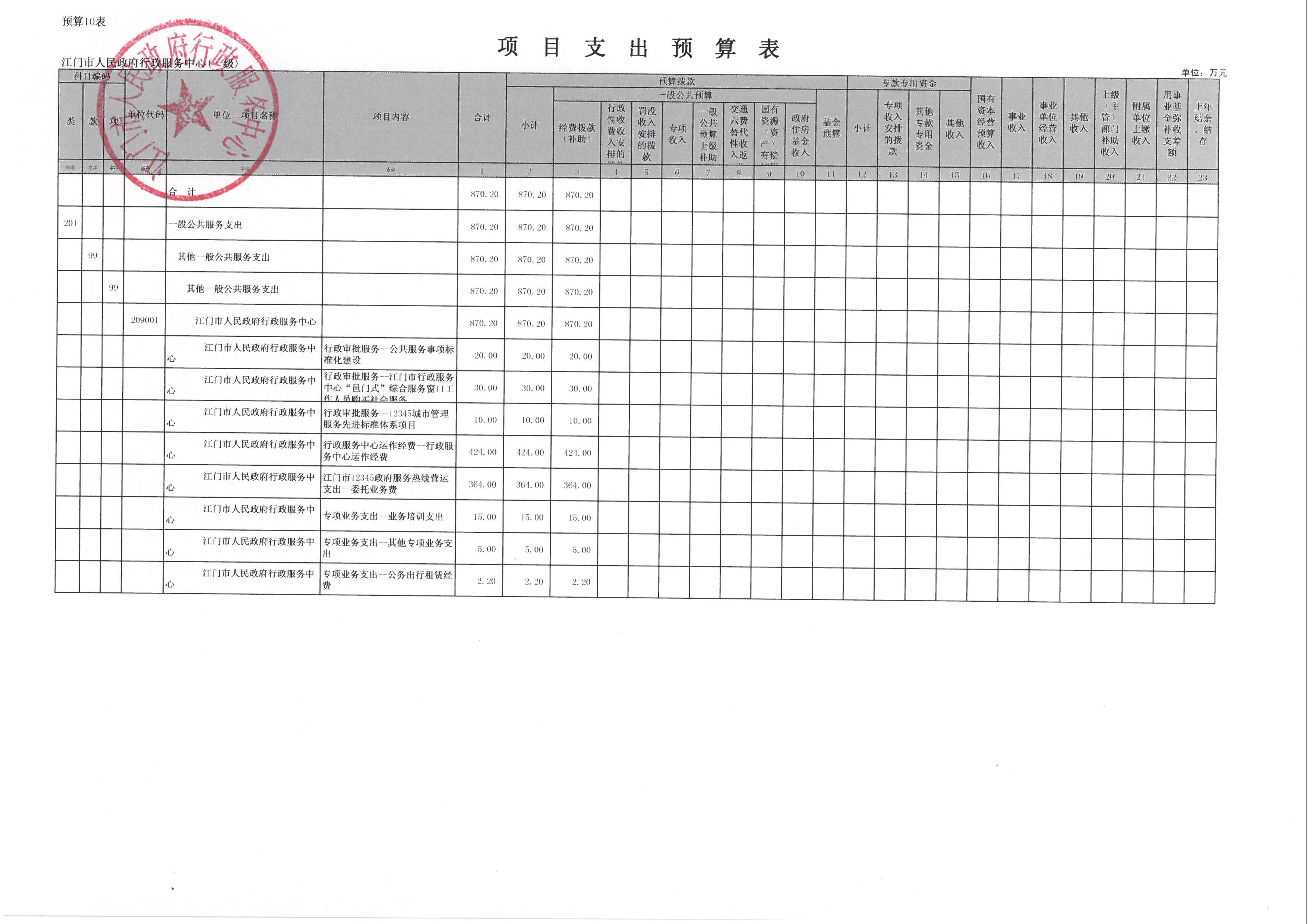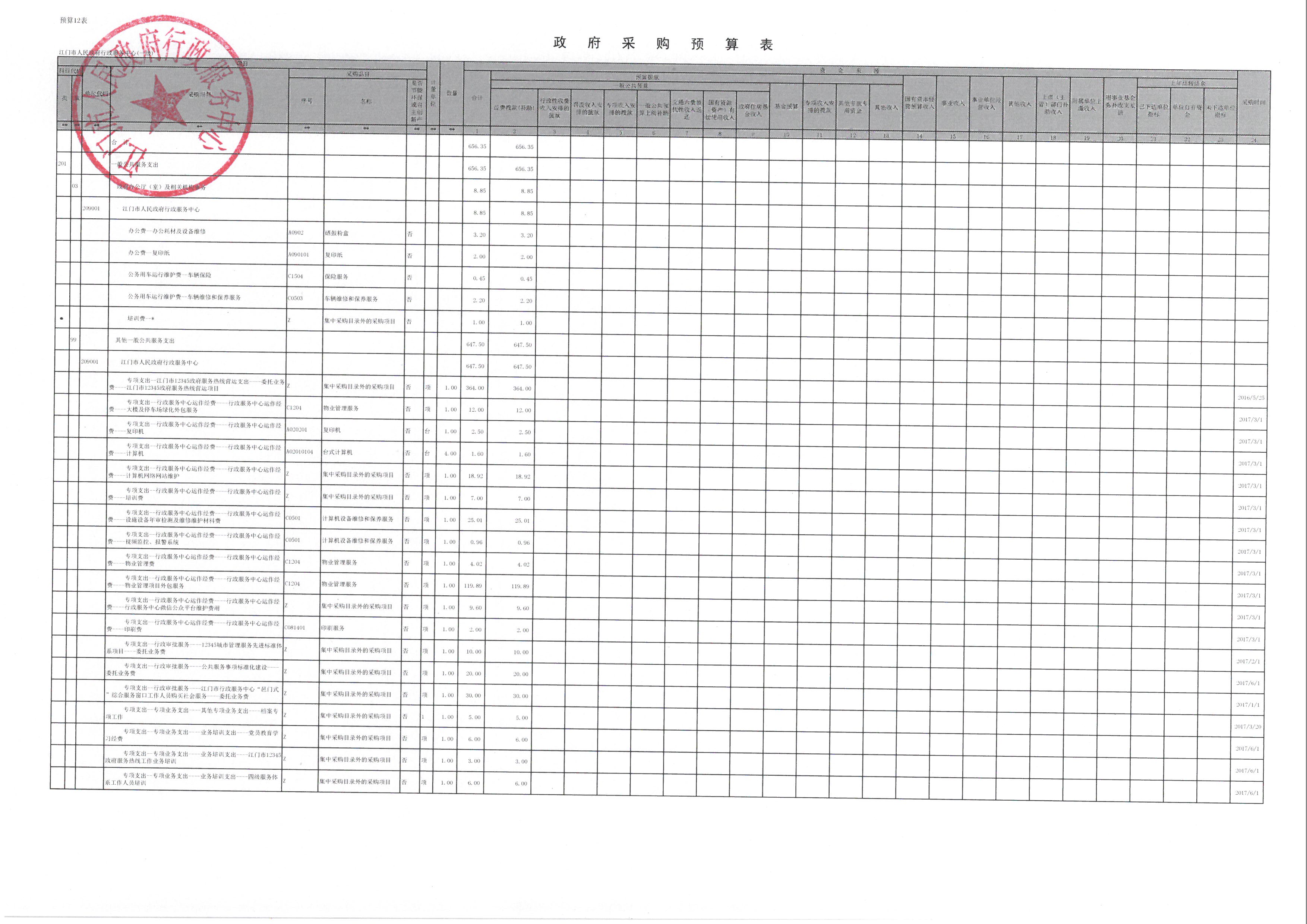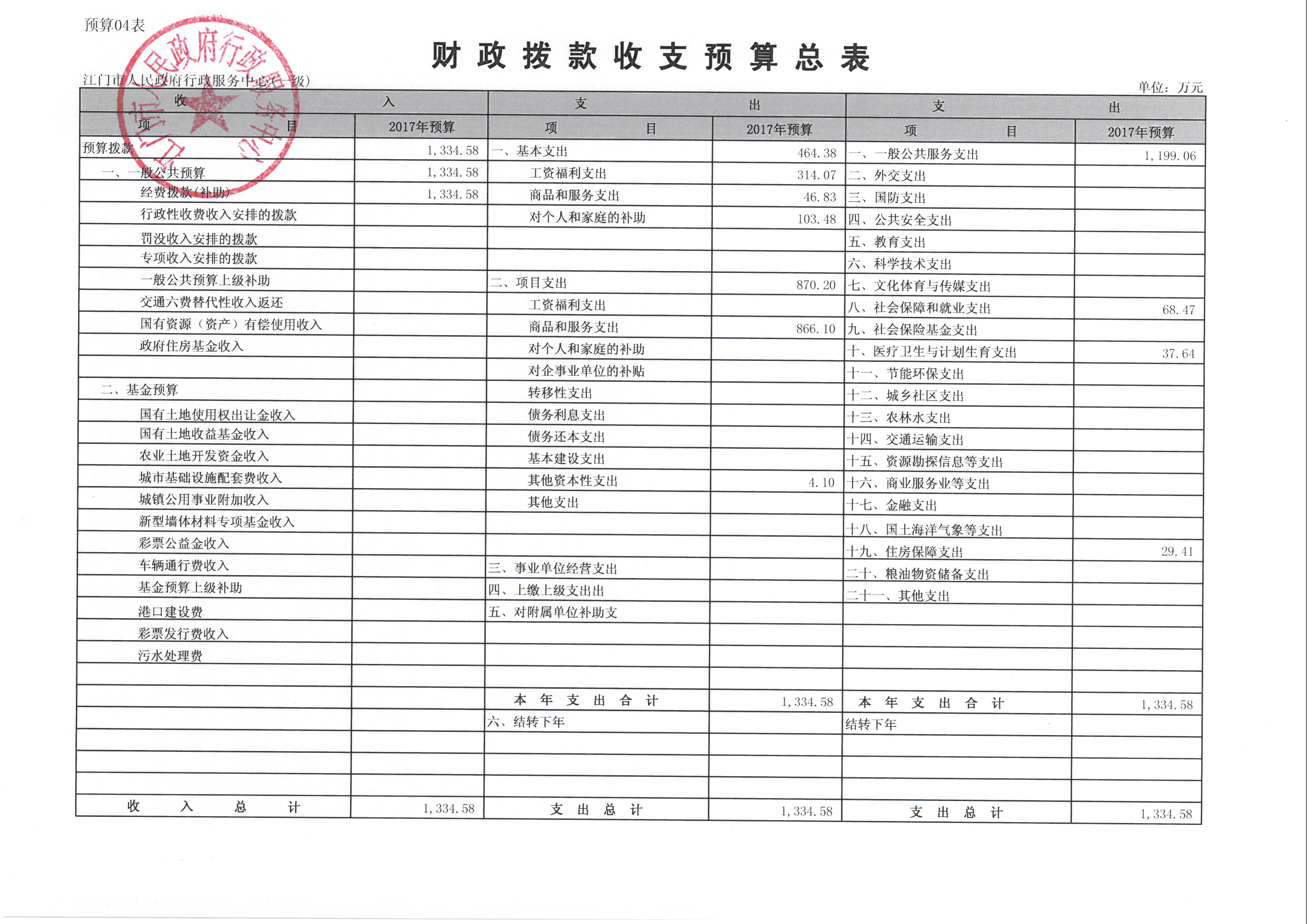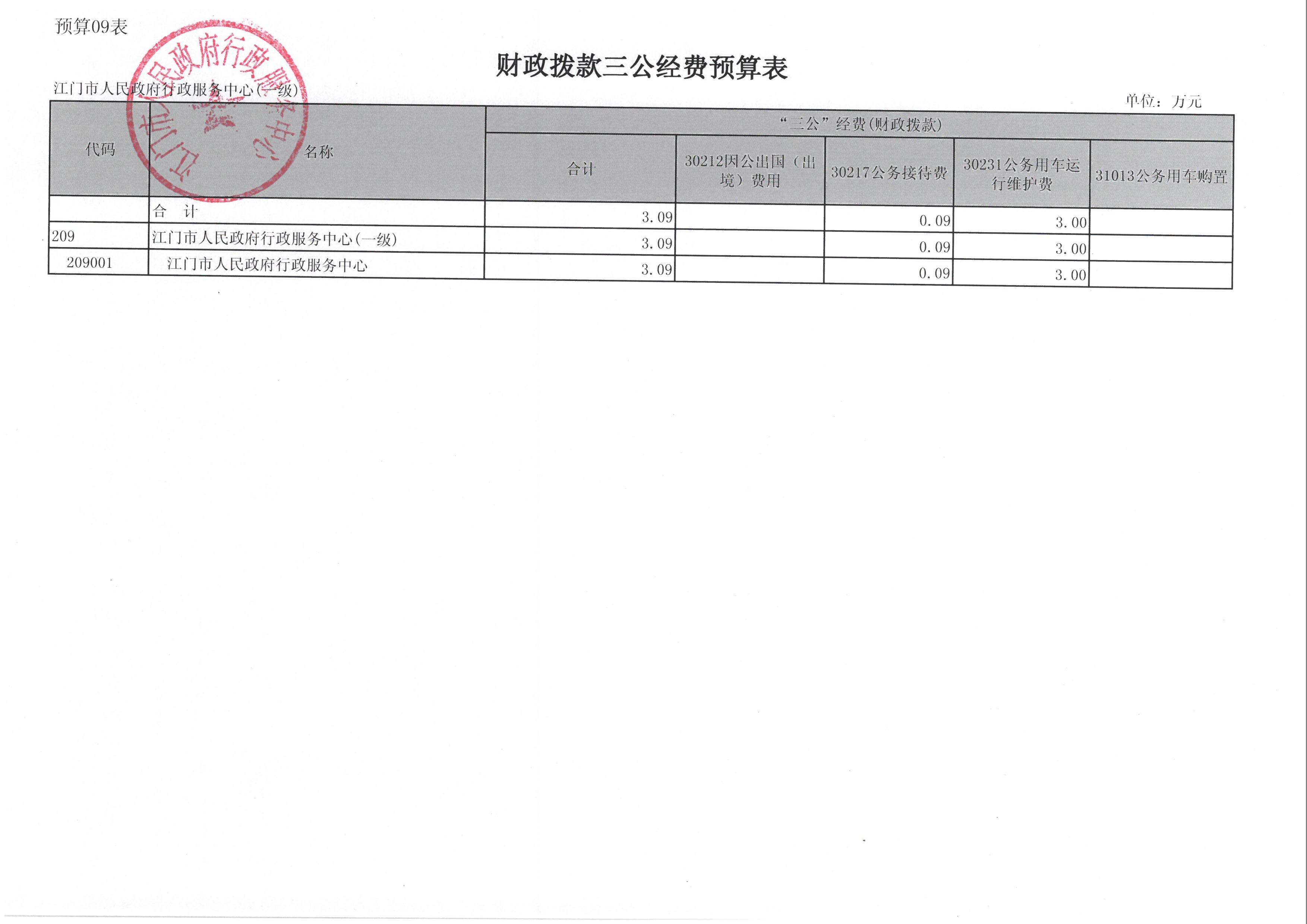 2017 年度江门市人民政府行政服务中心部门预算