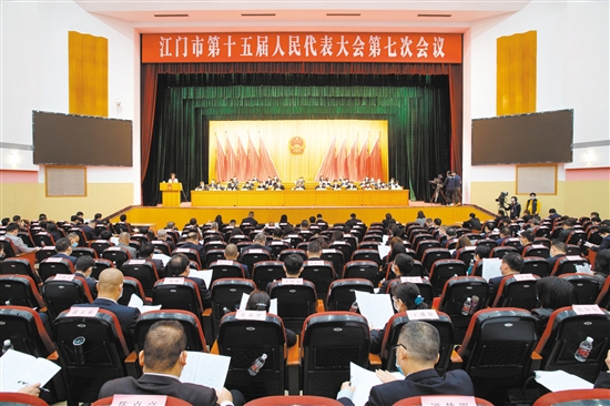 昨日上午,江门市第十五届人民代表大会第七次会议在市委市政府大会堂隆重开幕。江门日报记者 周华东 摄