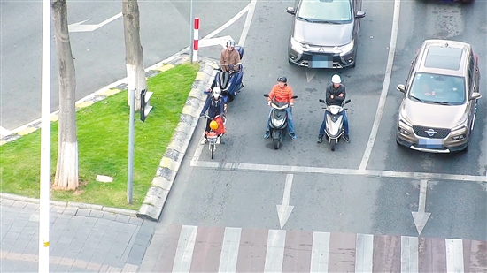 在记者观察的半小时里,违反交通规则通行的行人和非机动车只有个别几个,大部分市民都能够做到文明出行。在安全岛等红绿灯时,市民宋先生留意到头顶的无人机,觉得十分有意思。他说:“这种形式之前从来没有见过,很新颖。江门很早之前就在倡导出行要守规则,各类车辆各行其道,行人不闯红灯。但总有个别一些不自觉的人做不到,对他们应该给予教育,喊喊他们能起到提醒教育的作用。”