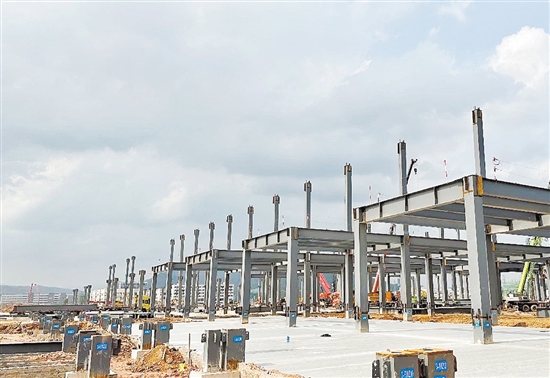 “工地目前有近600名工人,24小时不间断施工,目前已完成7万米的管桩施工作业,混凝土浇筑3000方,钢结构吊装完成2100吨,比原本计划提前了半个月。接下来,将按照施工进度,力争车间2、车间3本月达到闭水条件,10月15日之前交付。”鹤山市硅能源产业园区项目(首期)项目总工程师王志佳说。