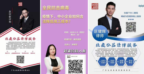 开辟律师“码”上服务通道。编印疫情防控法律法规指南和企业防控新冠肺炎法律知识问答纸质手册,附带二维码扫描功能,通过搜索连接电子手册,方便保存查询。在市司法局和市律协微信公众号公布118名律师电话,推行律师电子名片,扫码立即建立联系,方便群众进行法律咨询。有些律师事务所还推出扫码进群服务,群里举办法律知识小课堂,普及疫情下的法律常识。