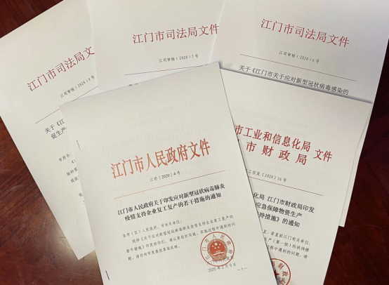 以合法性审核为抓手。制定《江门市抗疫临时性应急行政管理规范性文件指引》,快速办理因疫情影响出台支持企业的政策。严格细致做好《应对新型冠状病毒肺炎疫情支持企业复工复产的若干措施》等政府规范性文件的合法性审核,对侵犯企业合法权益的文件建议及时予以废止或者调整完善,为企业复工复产提供法制保障。