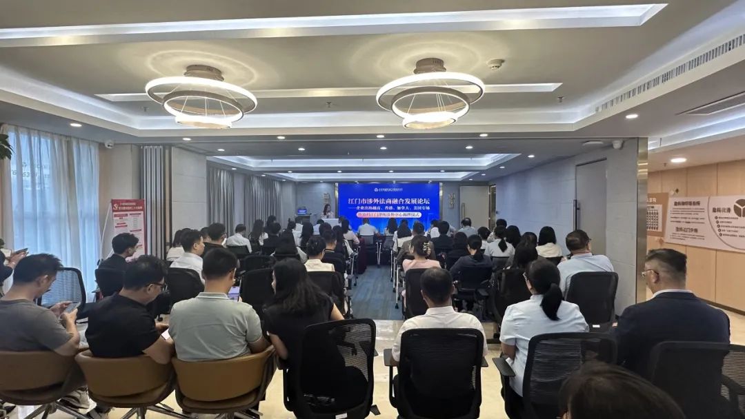 为贯彻落实党的二十届三中全会精神和“五外联动”推进高水平对外开放大会精神,加强我市涉外法律服务业与外经贸企业之间的联动,通过搭建涉外法律服务供需对接平台,推动企业投资者合法权益保障与整体涉外法治建设水平提高。8月14日,市司法局、市委统战部、市归国华侨联合会联合举办江门市涉外法商融合发展论坛暨盈科全球一小时法律服务生态圈·江门涉外中心揭牌仪式。市委统战部三级调研员叶志红;市归国华侨联合会党组成员、三级调研员黄俊杰出席活动,市司法局党组成员、市律师行业党委专职副书记彭高宴出席活动并致辞。活动由北京市盈科(江门)律师事务所承办。