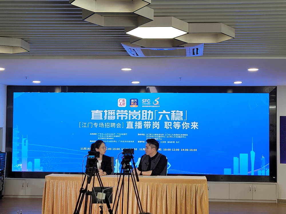 近年来,在省的大力支持和推动下,直播带岗助“六稳”活动为我市中小企业拓宽了宣传与招聘渠道,缓解了疫情影响下企业招工难的问题。本次直播活动旨在加大对我市中小企业的宣传力度,进一步引导和鼓励高校毕业生到江门市中小企业就业,有利于优化我市中小企业人才结构,推动我市中小企业高质量发展。11月18日下午,我局组织广东经济科教频道直播组对江门市鑫辉密封科技有限公司、江门摩尔科技有限公司2家企业进行走访直播,通过线上直播平台,对企业环境、企业文化、员工福利以及岗位要求等信息进行详细介绍,促进企业与求职者精准对接。11月19日,我局在江门市江海高新区高新创智城举办了定点直播,9家企业先后介绍了企业情况及用工需求等信息,现场互动气氛热烈。
