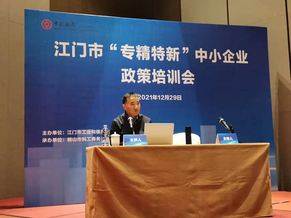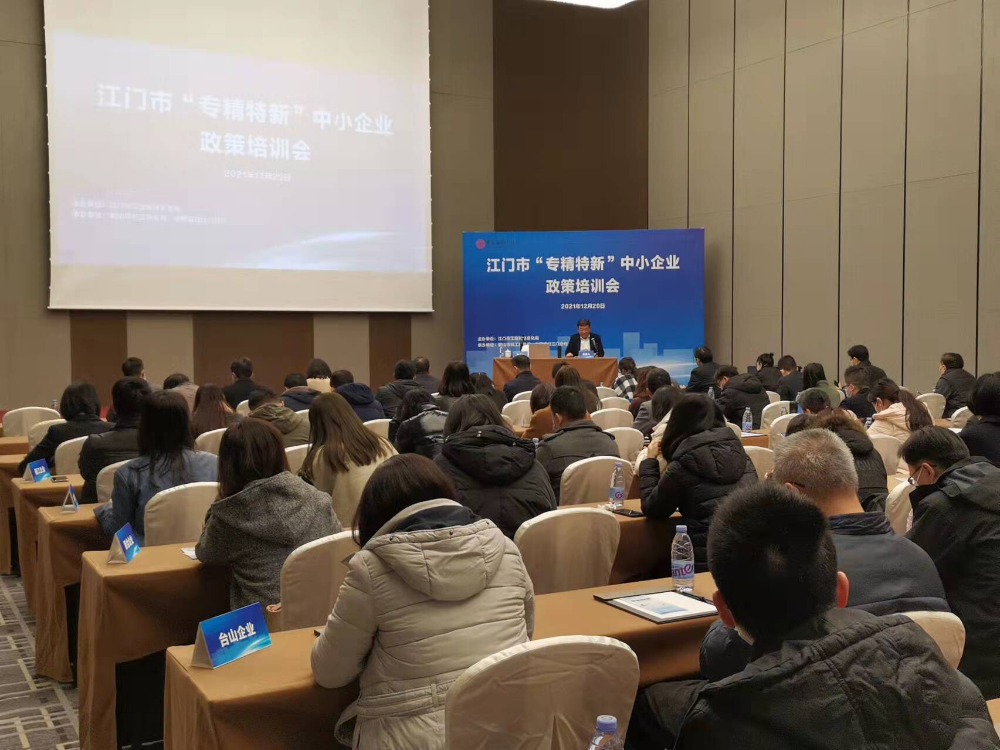 为贯彻实施市委十三届十六次全会提出“六大工程”之“工业振兴”工程,深入实施国家中小企业成长梯度培育计划,全力推动江门制造业高质量发展,2021年12月29日,市工业和信息化局联合鹤山市科工商务局、中国银行江门分行,在中欧(江门)中小企业国际合作区鹤山万达嘉华酒店举办“专精特新”中小企业政策专题培训会。工信部中小企业发展促进中心地方合作处处长童有好、市工业和信息化局副局长崔忠波、中国银行江门分行副行长杨显东等领导出席了会议,有关专业服务机构负责人以及江门市“专精特新”中小企业代表等约90人参加了培训。本次培训会旨在充分利用国家、省的“专精特新”政策机遇和服务资源,更好地为我市中小企业提供贴心服务,推动我市更多中小企业被认定为国家专精特新“小巨人”企业和省级专精特新中小企业。