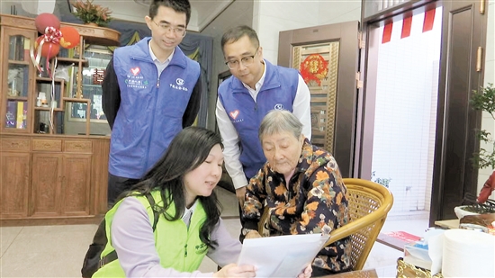 在推进社保“镇村通”过程中,市社保局着力优化健全社保志愿者服务流程,补齐公共服务短板。图为志愿者上门为老人提供服务。