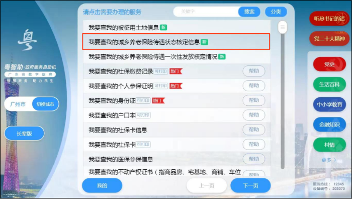 点击【我要查我的城乡养老保险待遇状态核定信息】→刷身份证→查看结果